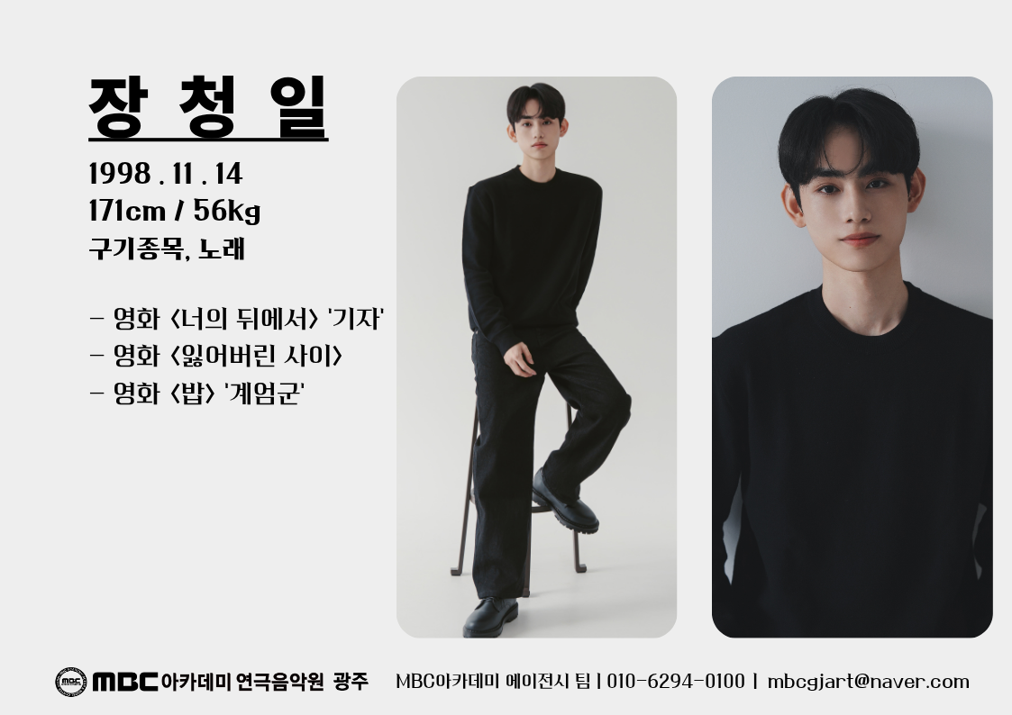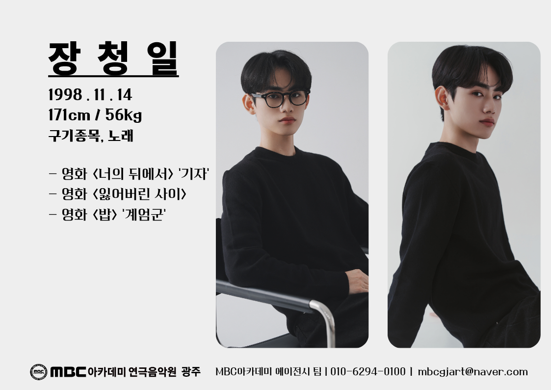 장청일 [남성 · 1998년생] 소속 성인 매체연기반 생년월일 1998-11-14 키 171cm 몸무게 56kg 이메일 mbcgjart@naver.com 담당자 총괄팀장 (010-6294-0100) 필모그래피 Filmography 장청일 - 성인 매체연기반 검색 목록 목록